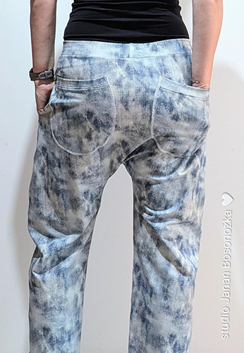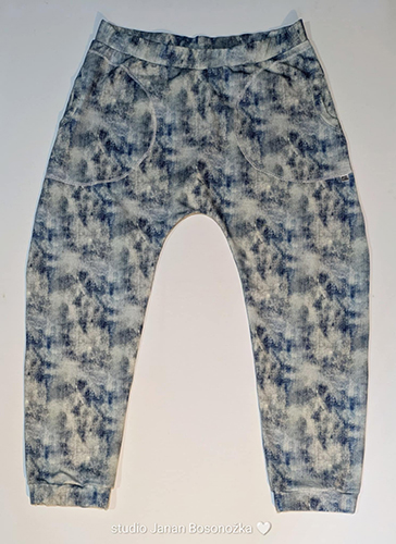 Baggy unisex v džínovém vzhledu plesnivek. Velmi pohodlné a šik. Dvě hluboké kulaté přední kapsy a dvě zadní. V pase je guma, která se přizpůsobí pasu. V konci nohavicích též. Šité z teplákoviny.
