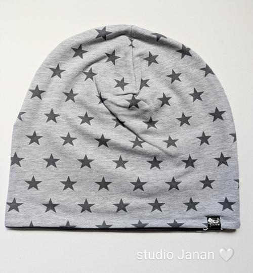 Čepice se vzory šedých hvězd.
