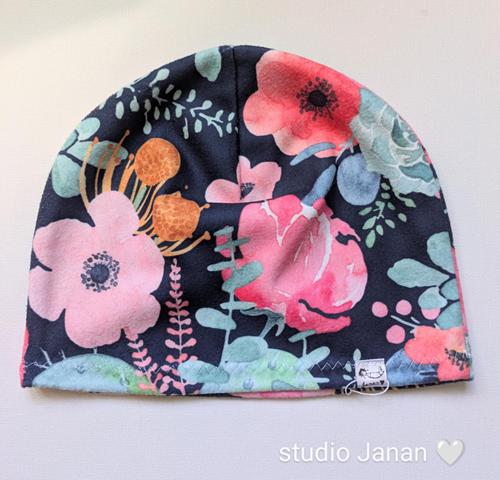Čepice se vzorem malovaných květů šitá z microfleece. Jena vrstva hřejivá.