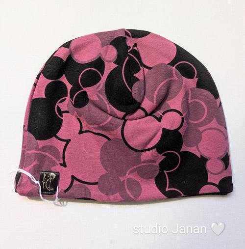 Čepice se vzorem Mickey Mouse či Minni v bordočerném odstínu.