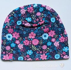 Čepice Růžovo-modré květy vel. 56