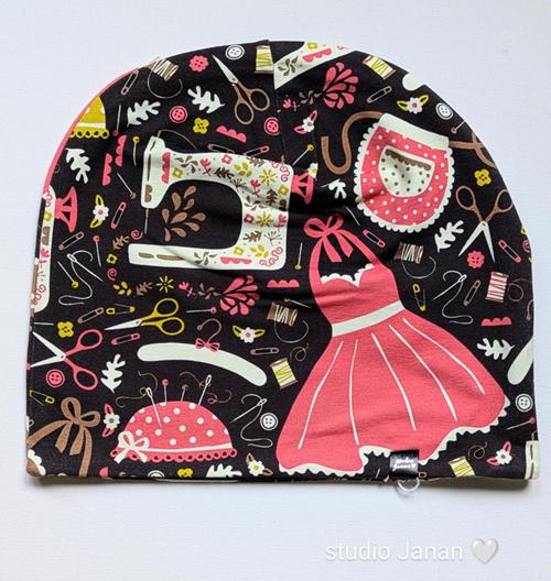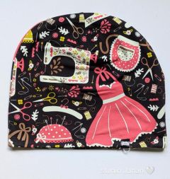 Čepice se vzory šití a švadlenky.
