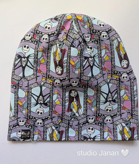Čepice se vzorem Nevěsty Tima Burtona.
