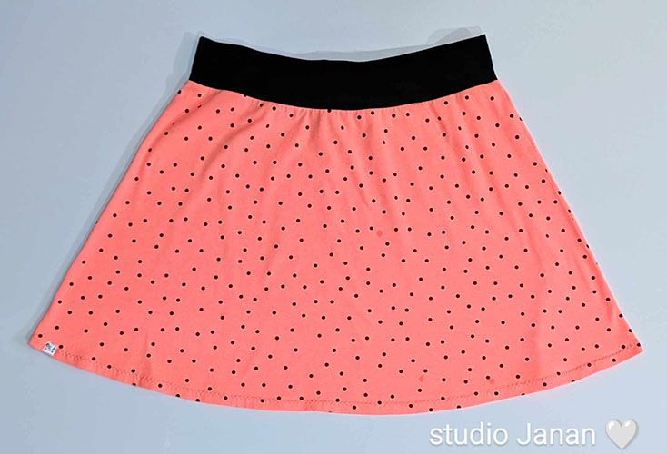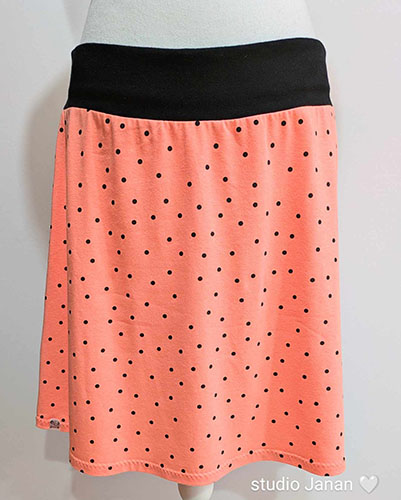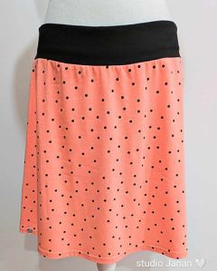 Dámská sukně s puntíky na výrazné barvě vel.L, šitá z úpletu.