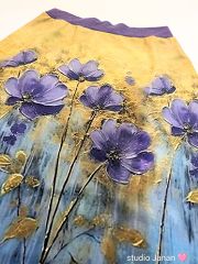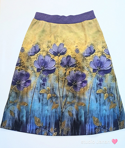 Dlouhá dámská sukně s malovanými květy vel.L šitá z teplákoviny.