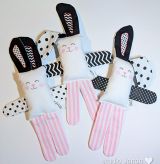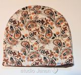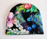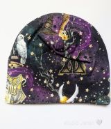 Čepice se vzorem Harry Potter Hedviky na fialovém podkladu.