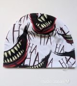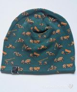 Čepice se vzory leopardího printu na tmavě modrém podkladu.