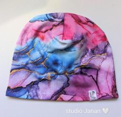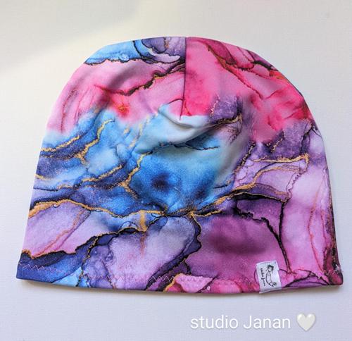 Sportovní funkční čepice v dekoru mramoru. Šitá z funkční látky s jemným chloupkem, je tedy teplejší.