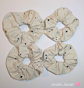 Látkové gumičky do vlasů s puntíky na krémovém podkladu. Větší velikost. Cena za kus.
