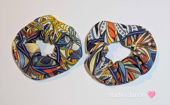 Látková gumička do vlasů mandalkami. Menší velikost. Cena za kus