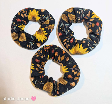 Látková gumička do vlasů s květinami. Menší velikost. Cena za kus