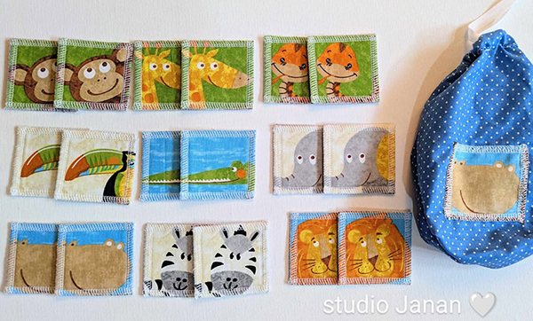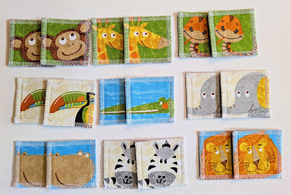 Látkové pexeso pro nejmenší. 9 párů zvířátek ze safari.
