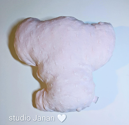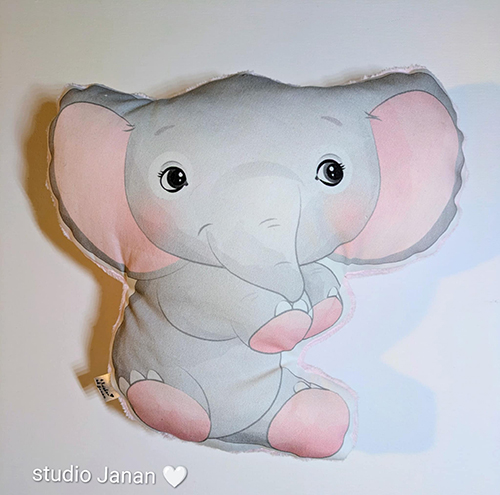 Heboučký muchláček slůně může být i jako polštářek. Z druhé strany má příjemnou látku minky v růžovém odstínu.