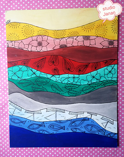 Malba a kresba na tvrzené plátno.