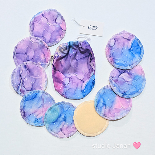 Pratelné odličovací tampony s květy. Obsahuje 9ks a látkový pytlík.