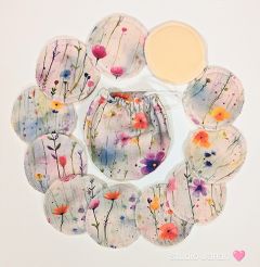 Pratelné odličovací tampony s květy. Obsahuje 11ks a látkový pytlík.