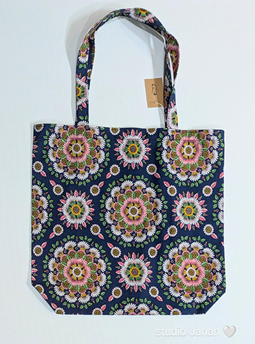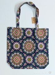 Plátěná taška s květy na tmavě modrém podkladu, dvě ucha.