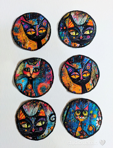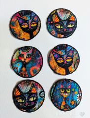 Látkové podtácky podžehlené ronarfixem v dekoru veselých koček.