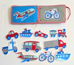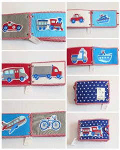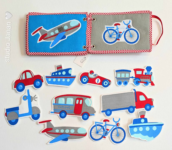 Látková kniha nejen pro kluky. Dopravní prostředky jsou na suchý zip a jsou pevné, vše poctivě entlováno.