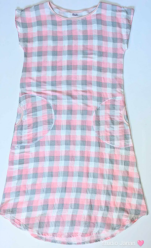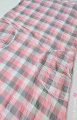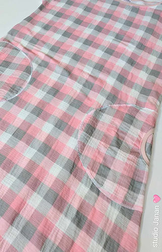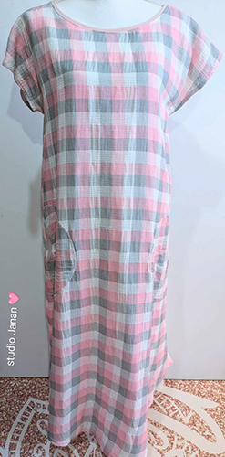 Látka je velmi jemná a příjemná na dotek. Šaty jsou klasického střihu kombinace dvou látek, dekoru s květy a růžové. Bez kapes.