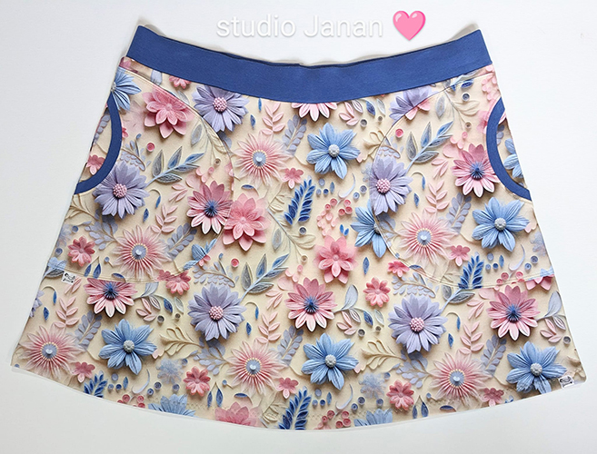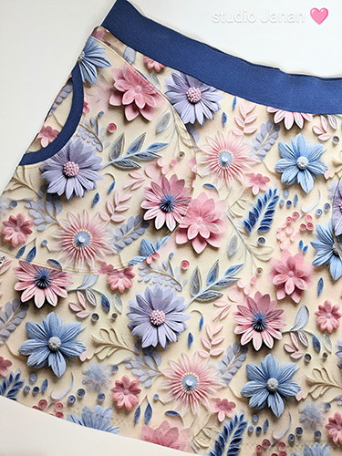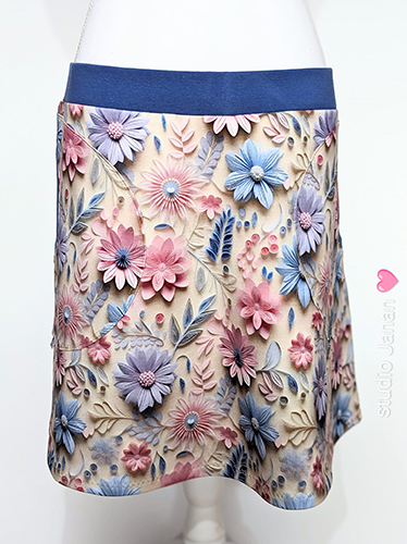 Dámská sukně s plastickými květy vel.L šitá z teplákoviny.