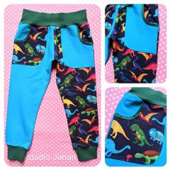 Krásné tepláčky s dinosaury s kapsami z příjemné teplákoviny.