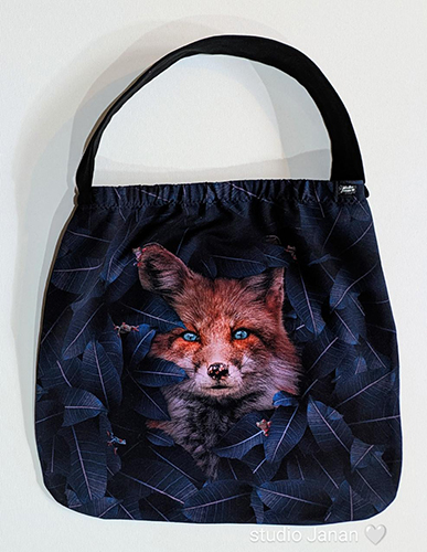 Větší taška s liškou a žabičkami. Zadní díl a ucho je černý.
